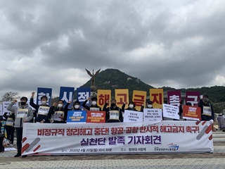 코로나19로 비정규직노동자의 고용위기가 확산되고 있는 가운데, 간접고용노동자들이 해고금지 등의 긴급대책이 필요하다며 원청이 교섭에 나설 것을 촉...
