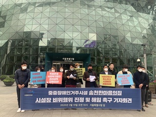 공공운수노조 사회복지지부는 19일 오전 10시 서울시청 앞에서 기자회견을 열고 "수없이 많은 공익제보에도 불구하고 중증장애인거주시설 송천한마음의...