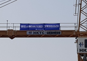 이틀째 파업을 진행 중인 타워크레인 노동자들의 고공농성이 이틀 차를 맞고 있다. 이들은 정부가 소형타워크레인 대책을 마련하기 전까지 파업으로 맞...