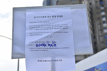 현대중공업이 물적 분할을 위한 주주총회 장소와 시각을 울산대학교 체육관, 31일 오전 11시 10분으로 변경했다. 울산대 체육관은 원래 주총 장...
