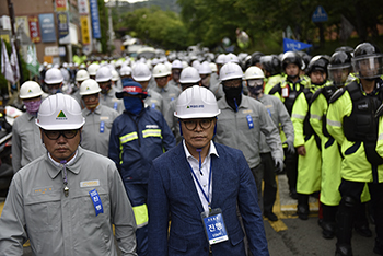 현대중공업이 31일 물적 분할을 위한 주주총회를 예정대로 한마음회관에서 강행하려 한다. 현대중공업은 오전 7시 45분 경 용역 경비 약 1천 명...