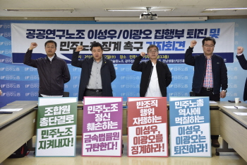 공공연구노조 내 폭행 사건과 산별 전환을 이유로 공공연구노조를 탈퇴한 노조들이 공공연구노조 집행부의 퇴진, 민주노총의 징계를 촉구했다. 기자회견...