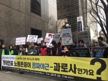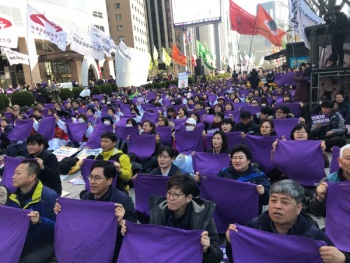3월 8일 오후 서울 중구 프레스센터 앞에서 민주노총의 주최로 ‘세계 여성의 날 정신 계승 전국노동자대회’가 열렸다. 이 자리에서 여성 노동자들...