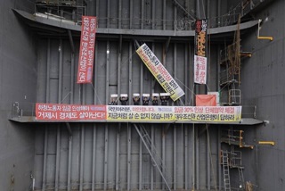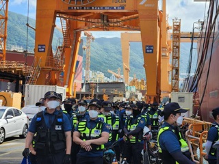 금속노조 거제통영고성 조선하청지회와 대우조선해양 사내협력회사 협의회가 일주일째 교섭을 이어가는 가운데, 21일 경찰이 조선소에 병력을 배치하면서...