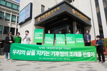 녹색당은 11일 서울시의회 앞에서 기자회견을 열고 녹색당이 마련한 기후정의조례안을 발표했다. 녹색당은 교통, 주거, 광고, 노동 등과 같이 지역...