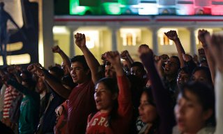 시위에 나섰다가 납치 살해된 동료들의 무참한 죽음에 대한 정부의 대책을 촉구하기 위해 멕시코 학생들이 고속도로를 점거했다.