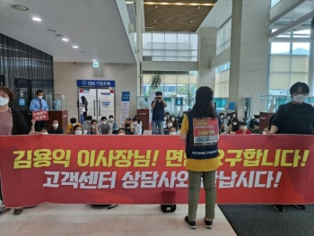 고객센터 직영화를 요구하며 전면 파업에 나선 건보공단 고객센터 노동자들이 갑작스레 단식을 시작한 김용익 건보공단 이사장을 규탄하고 나섰다. 김 ...