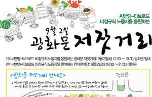 씨앤앰-티브로드 비정규직 노동자들을 응원하는 ‘광화문 저잣거리’. 장기파업으로 고통스러워하고 있는 케이블방송 노동자들을 보면서 어떻게 힘을 보태...