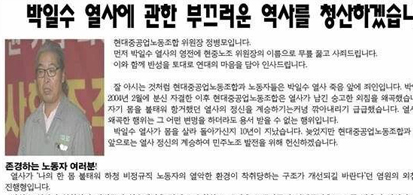 [기고] 2월 14일 박일수 열사 10주기...대기업 노조위원장의 처절한 반성문