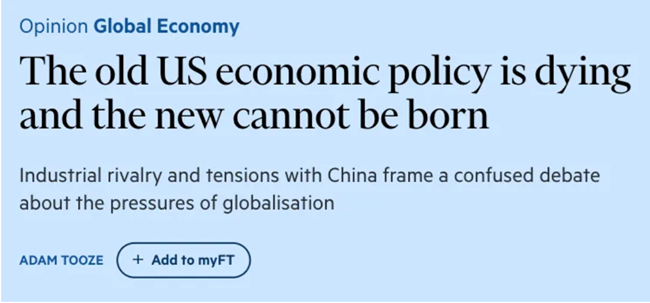 "낡은 미국 경제 정책은 쇠퇴하고 있으며 새로운 정책은 탄생할 수 없다..."(The old US economic policy is dying and the new cannot be born …)