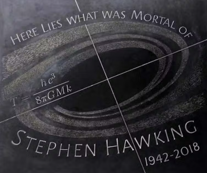 런던 웨스트민스터 사원의 본당에 위치한 스티븐 호킹의 묘비 아래에는 그의 유골이 안치되어 있다이 묘지는 아이작 뉴턴과 찰스 다윈의 묘지에서 멀지 않은 곳에 자리 잡고 있다묘비에 새겨진 문구는 뉴턴의 묘비에 라틴어로 쓰인 문구를 영어로 번역한 것이다. 출처런던 웨스트민스터 사원의 학장과 의회.