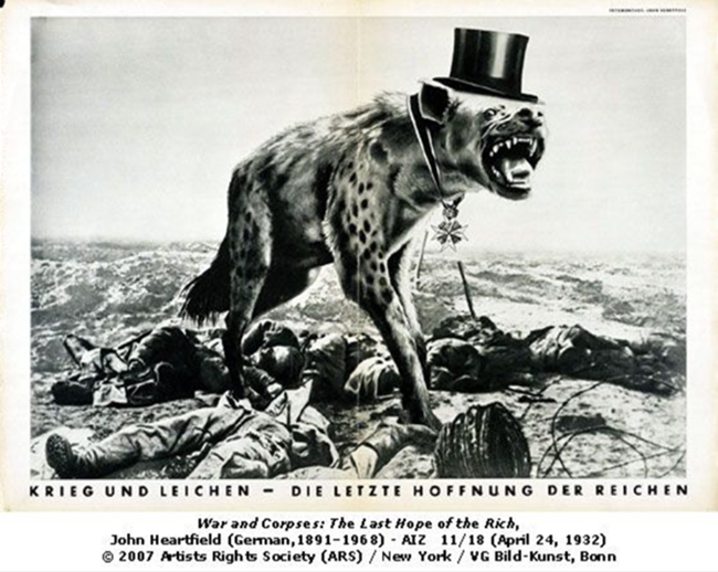 존 하트필드(John Heartfield) – <전쟁! (다시는 안 된다!)>(Krieg! (Niemals wieder!)) 기법: 은염 프린트(Silbergelatineabzug) 및 붓으로 보정(Pinselretusche) 제작 연도: 1932/1941저작권: The Heartfield Community of Heirs / VG Bild-Kunst, Bonn 2020 / Akademie der Künste, Berlin