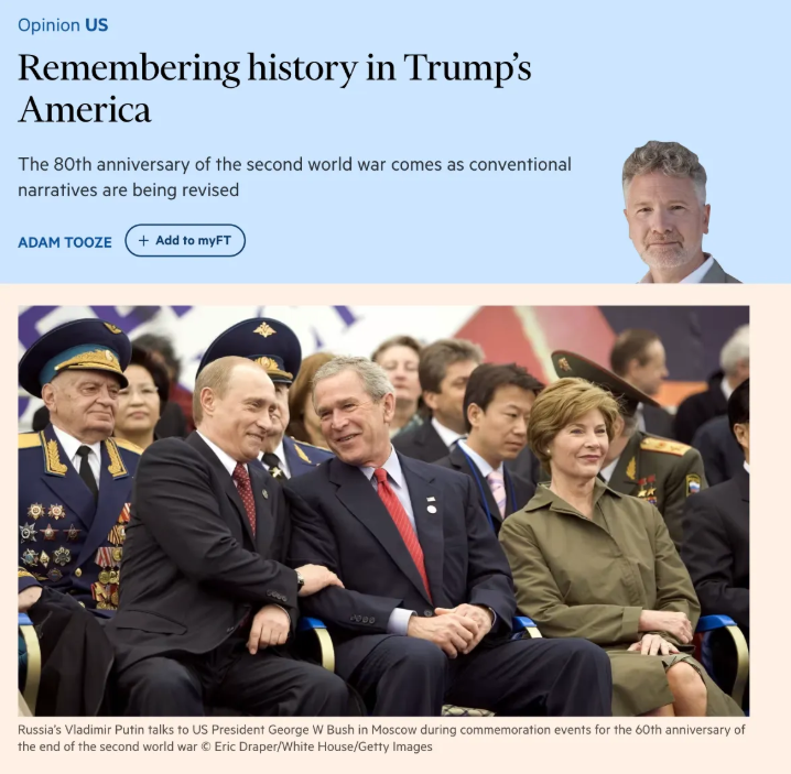 지난주 나는 파이낸셜 타임스(FT)에 정기 기고문을 쓰면서트럼프 행정부의 파트너로서 2차 세계대전 80주년을 기념한다는 문제를 다뤘다.