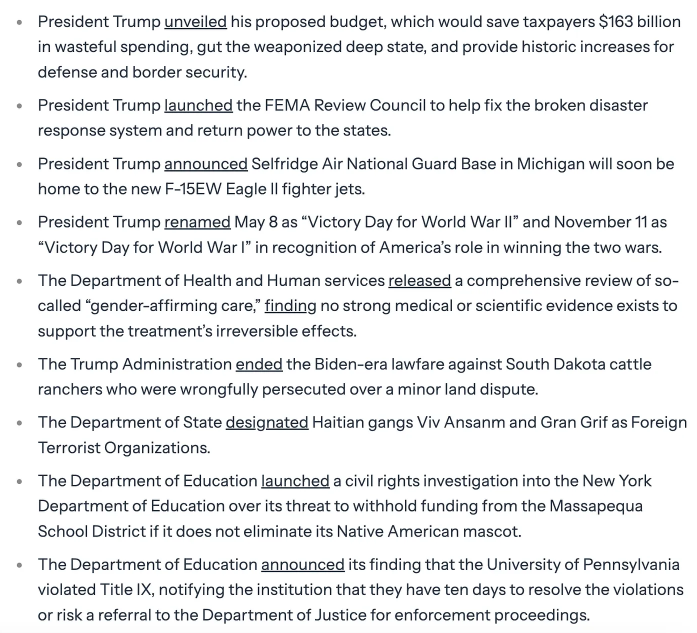 · 트럼프 대통령은 낭비성 지출을 줄이고무기화된 행정부를 해체하며국방과 국경 안보에 대한 역사적인 예산 증액을 포함해 총 1,630억 달러의 세금 절감을 실현할 예산안을 공개했다.