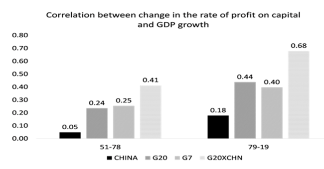 자본 이윤율 변화와 GDP 성장 간 상관관계. 출처: EPWT 7.0 시리즈, 필자 계산