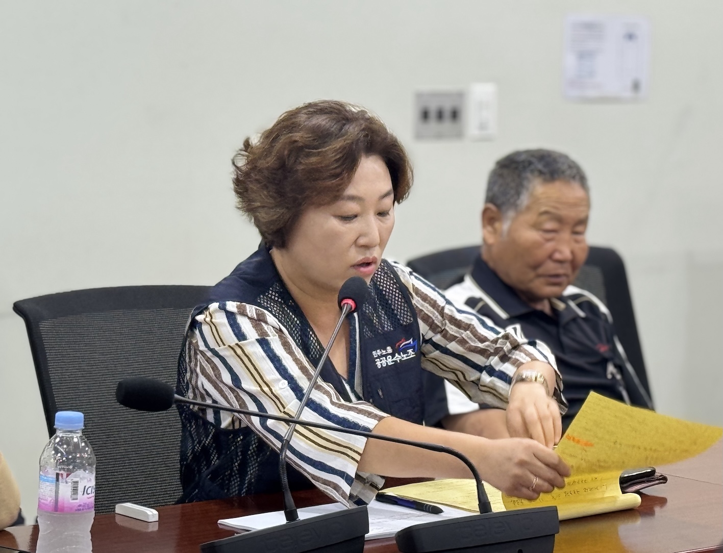 발언 중인 고 정병수 노동자의 유족. 참세상
